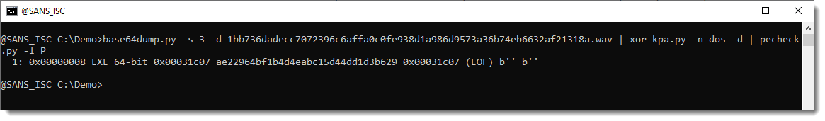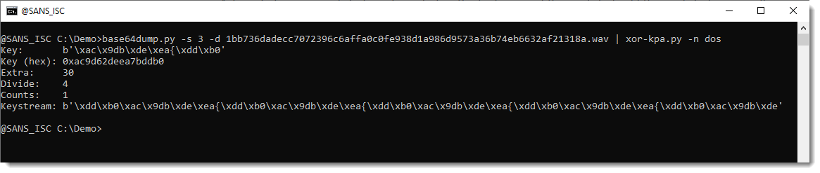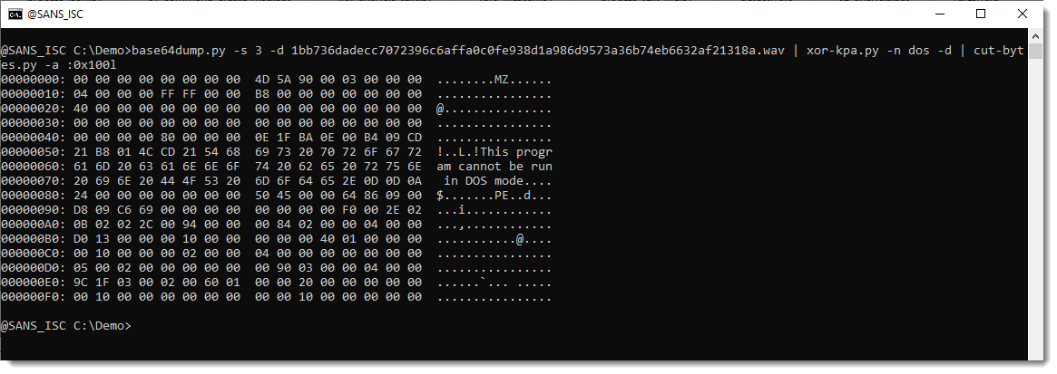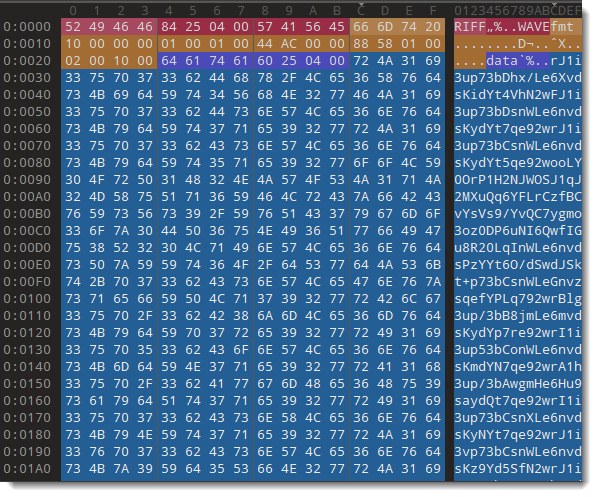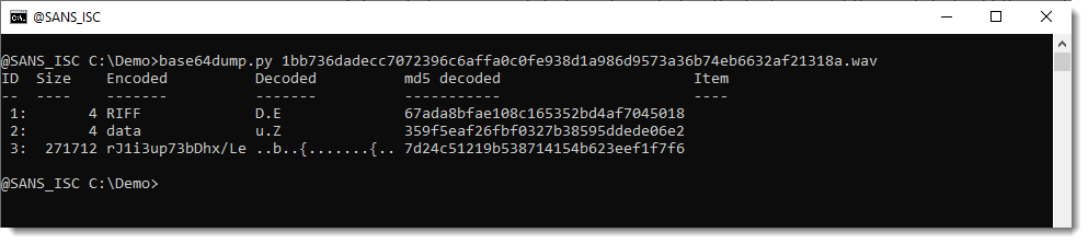 Thus I don't need a .wav parser to extract the encoded payload, I can just use my base64dump.py tool:
