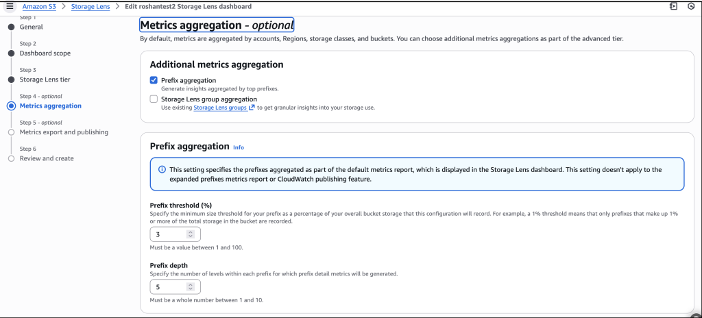 Next, I select Prefix aggregation as an additional metrics aggregation, then leave the rest of the information as default before I choose Next.