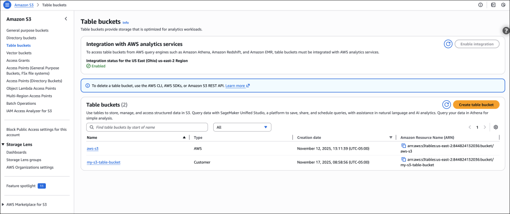 S3 Storage Lens metrics can now be automatically exported to S3 Tables, a fully managed feature on AWS with built-in Apache Iceberg support. This integration provides daily automatic delivery of metrics to AWS managed S3 Tables for immediate querying without requiring additional processing infrastructure.