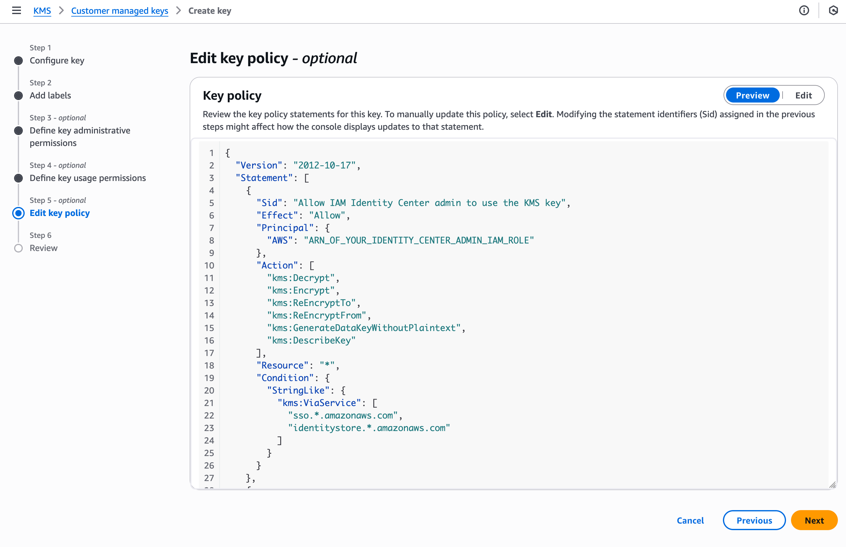 "Sid": "Allow_IdentityCenter_admin_to_describe_the_KMS_key",