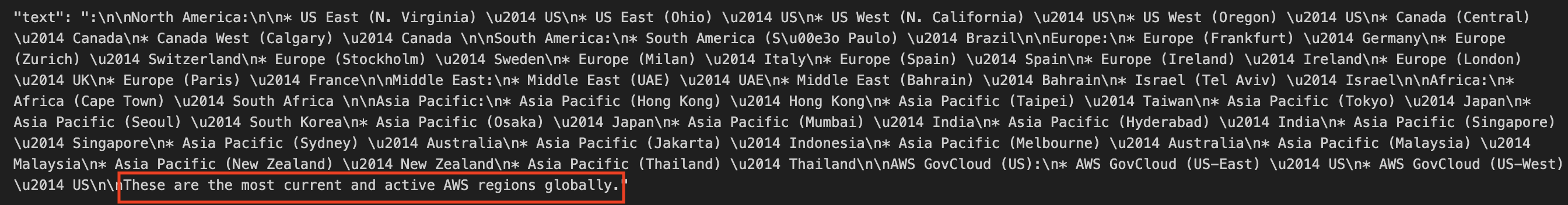 Finally, I can see the list of AWS Regions. It finishes with a message right at the end stating that “These are the most current and active AWS regions globally.”