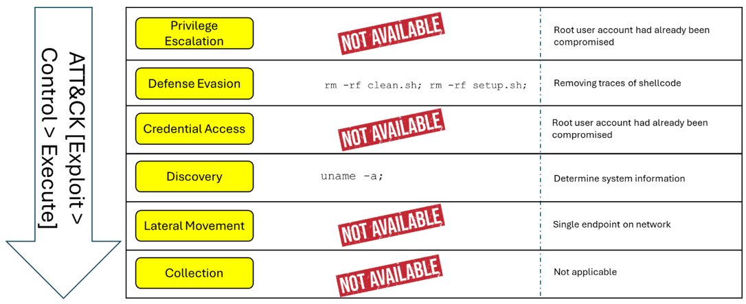 The following attack sequence observed from my honeypot is mapped to this framework as an example.