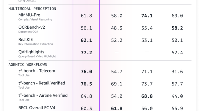 Amazon Nova 2 Lite demonstrates strong performance across diverse evaluation benchmarks. The model excels in core intelligence across multiple domains including instruction following, math, and video understanding with temporal reasoning. For agentic workflows, Nova 2 Lite shows reliable function calling for task automation and precise UI interaction capabilities. The model also demonstrates strong code generation and practical software engineering problem-solving abilities.