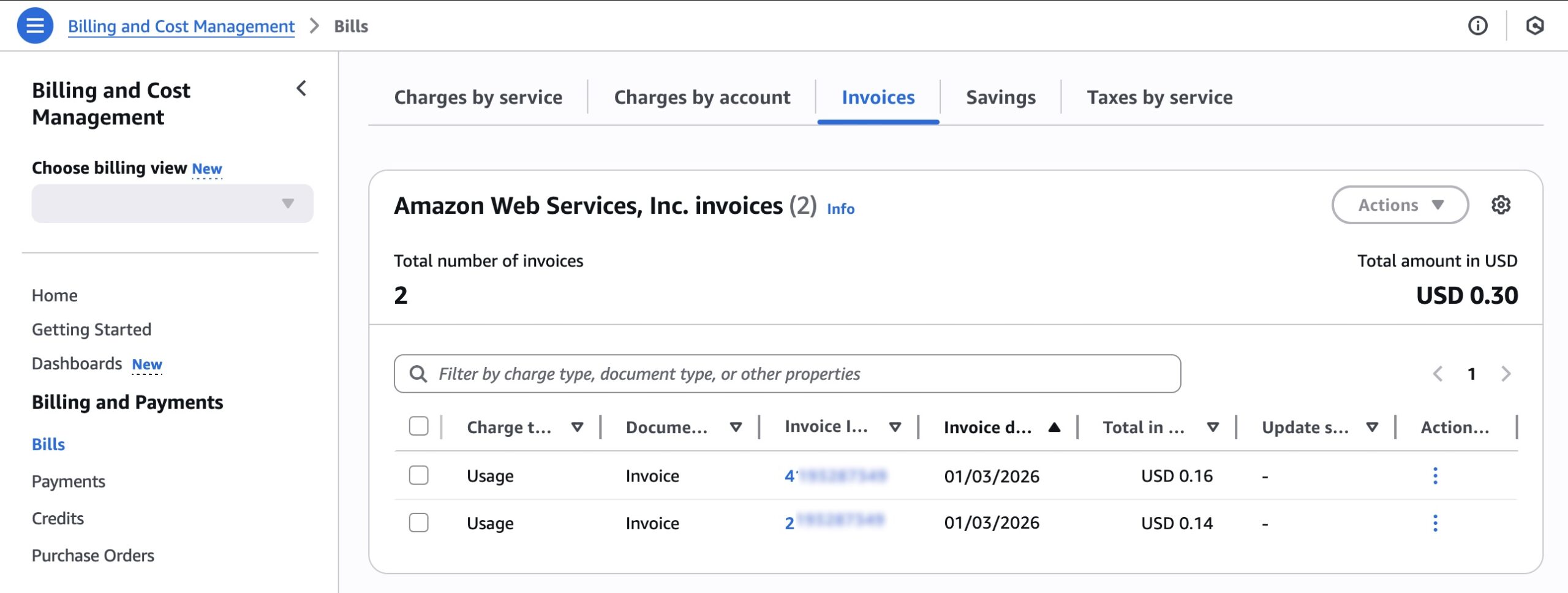 After your billing transfer begins, the bill-transfer account will receive a bill at the end of the month for each of your billing transfers. To view transferred invoices reflecting the usage of the bill-source accounts, choose the Invoices tab in the Bills page.
