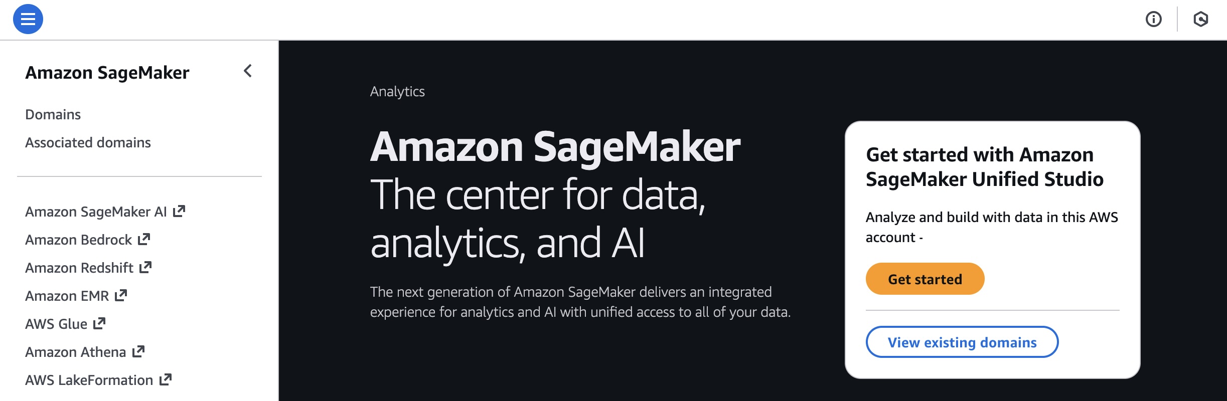 - Direct integration – You can launch SageMaker Unified Studio directly from Amazon SageMaker, Amazon Athena, Amazon Redshift, and Amazon S3 Tables console pages, giving a fast path to analytics and AI workloads.