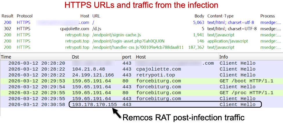 This diary describes a Remcos RAT infection that I generated in my lab on Thursday, 2026-03-11. This infection was from the SmartApeSG campaign that used a ClickFix-style fake CAPTCHA page.