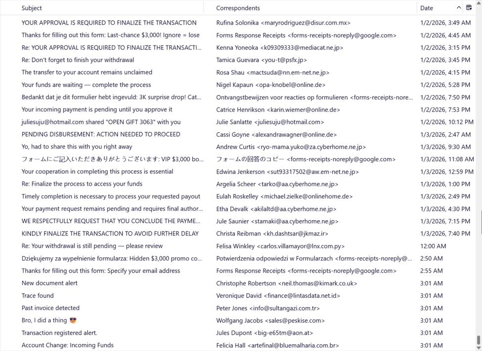 This campaign is not limited to abusing telegra[.]ph. Many of these emails contain Google Forms pages that lead to the telegra[.]ph page.