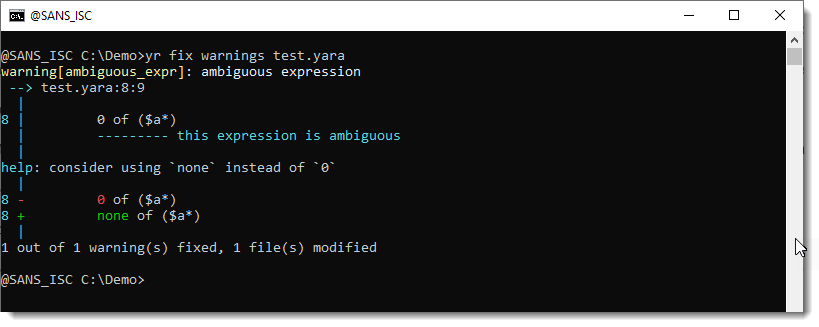 YARA-X's 1.10.0 release brings a new command: fix warnings.